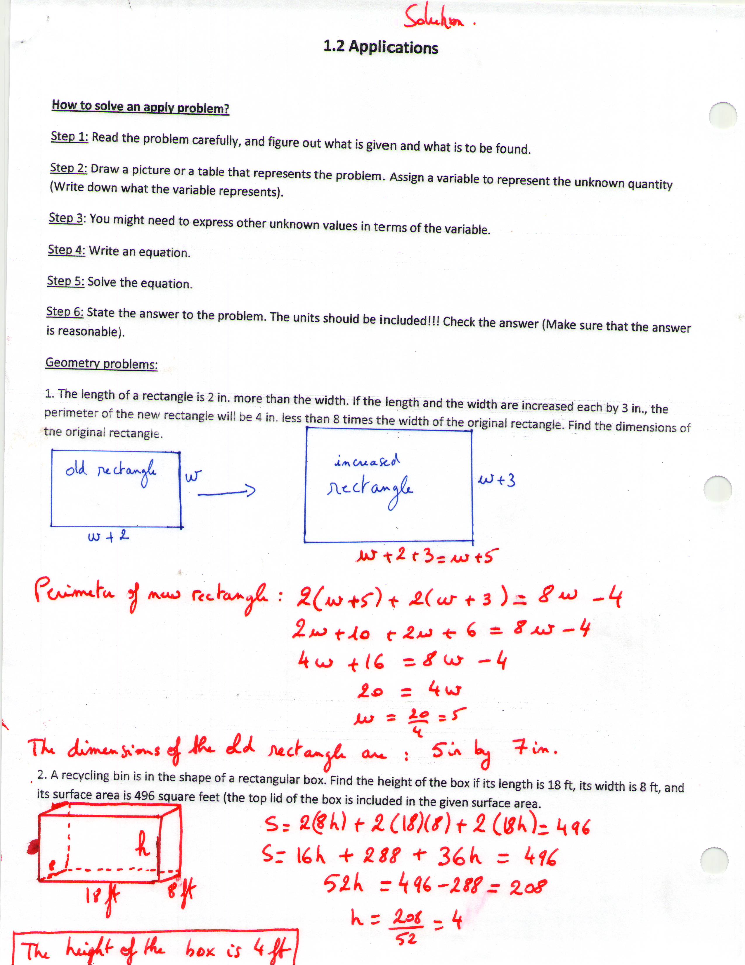 - Solutions to Applications with Linear Equations ( Part A)(Part B)